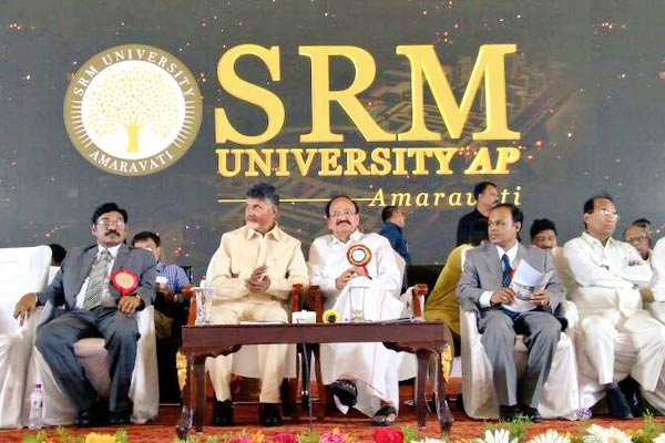 Andhra Pradesh’s first private University by SRM Group was launched by Chief Minister Chandrababu Naidu and Union Minister Venkaiah Naidu at Neerukonda village in Mangalagiri Mandal in Amaravati. Venkaiah speaking at the launch said that Lakshmi (Goddess of wealth) will arrive where there is Saraswathi (goddess of Education). However contrary to the reports SRM university would let a student in only if they have lot of money.