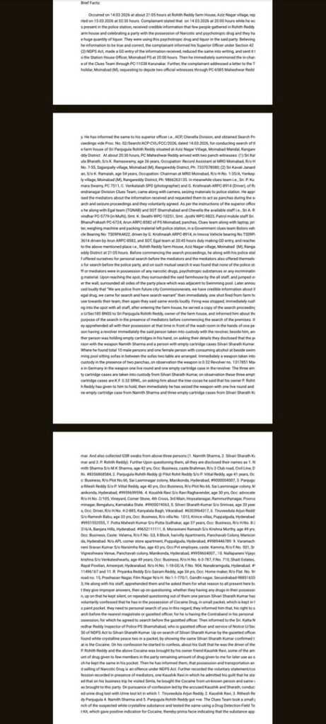 Ex BRS MLA Named A2, TDP MP A7 in Moinabad Farmhouse Drug Case