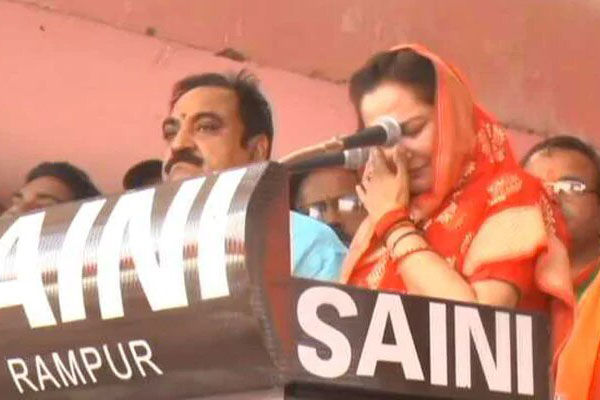 Jayaprada during an election public rally in Rampur constituency, Uttar Pradesh, narrated how she was pushed out of her constituency. The actor-turned-politician received grand support from public and BJP leaders who continuously shouted: “Jayapradaji sangharsh karo, hum aapke saath hai.” When this is translated into English, it reads, Mrs Jayaprada you continue your fight and we’re with you.