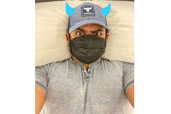 Sai posted an Instagram picture shot from top angle, which shows him lying in bed with a face mask on. He gave a quirky touch to the photo sketching blue devil horns on his cap, and completed the picture with an angry gaze into the camera.