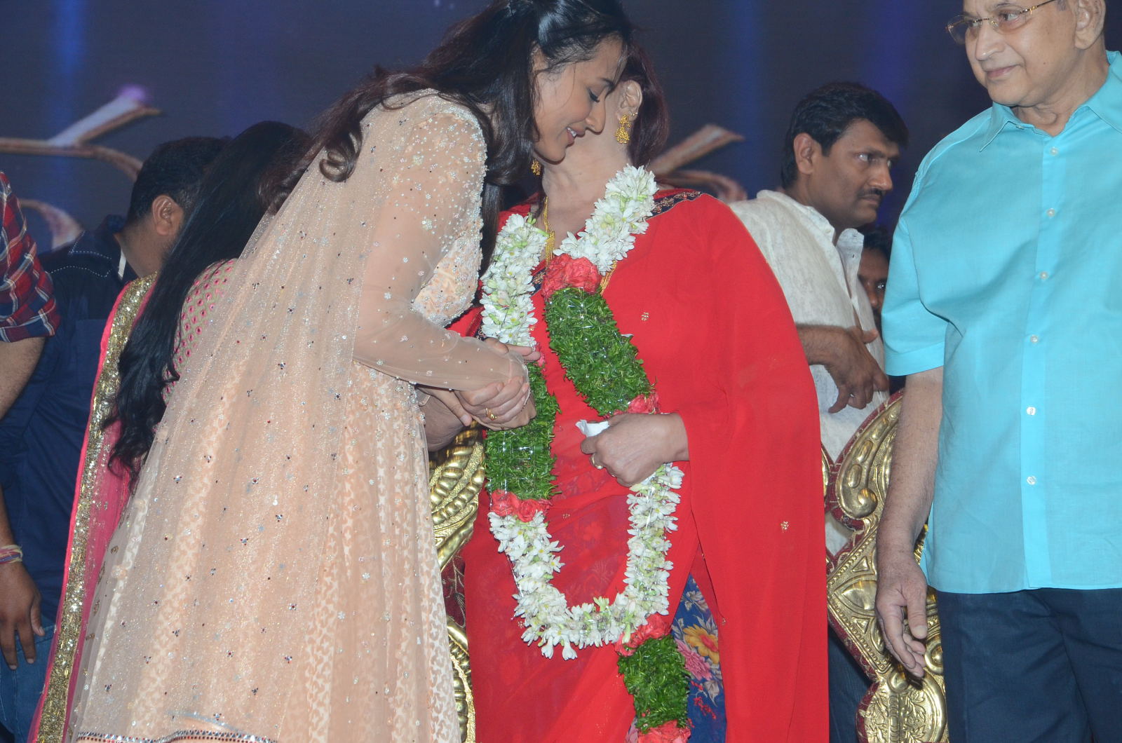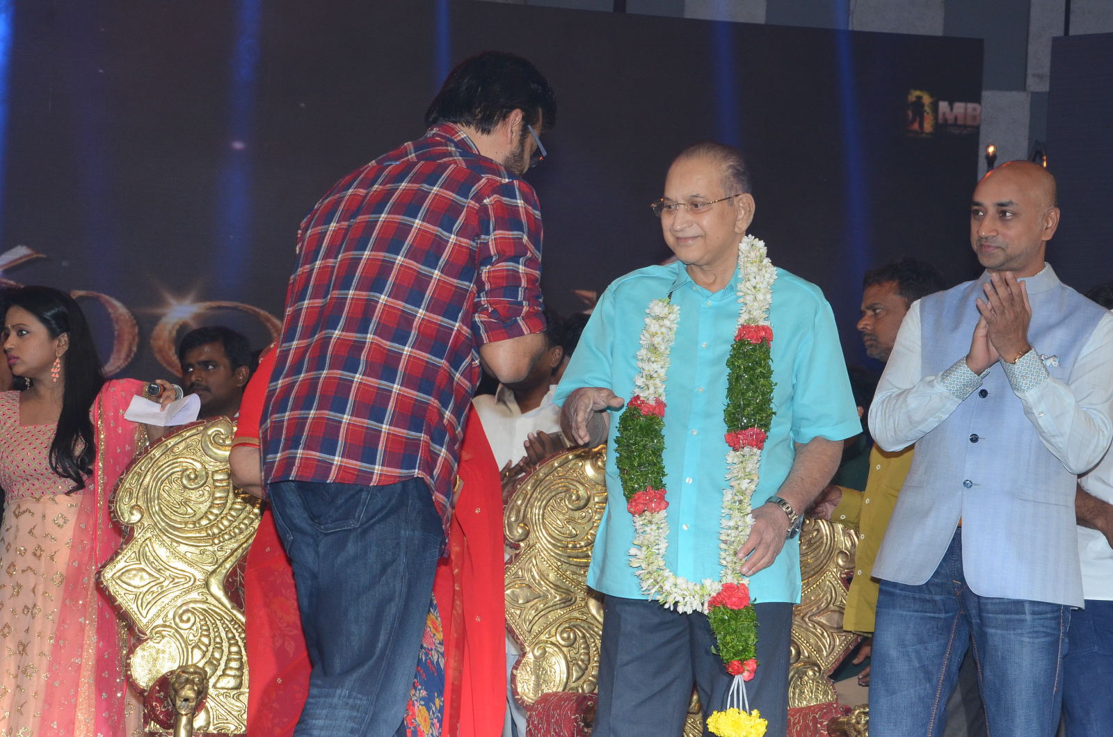 Srimanthudu audio was launched in Hyderabad today in a vibrant function at Shilpa Kala Vedika . Victory Venkatesh and V V Vinayak were the chief guests. Super Star Krishna was felicitated at the beginning of the function by the Producers of the film.