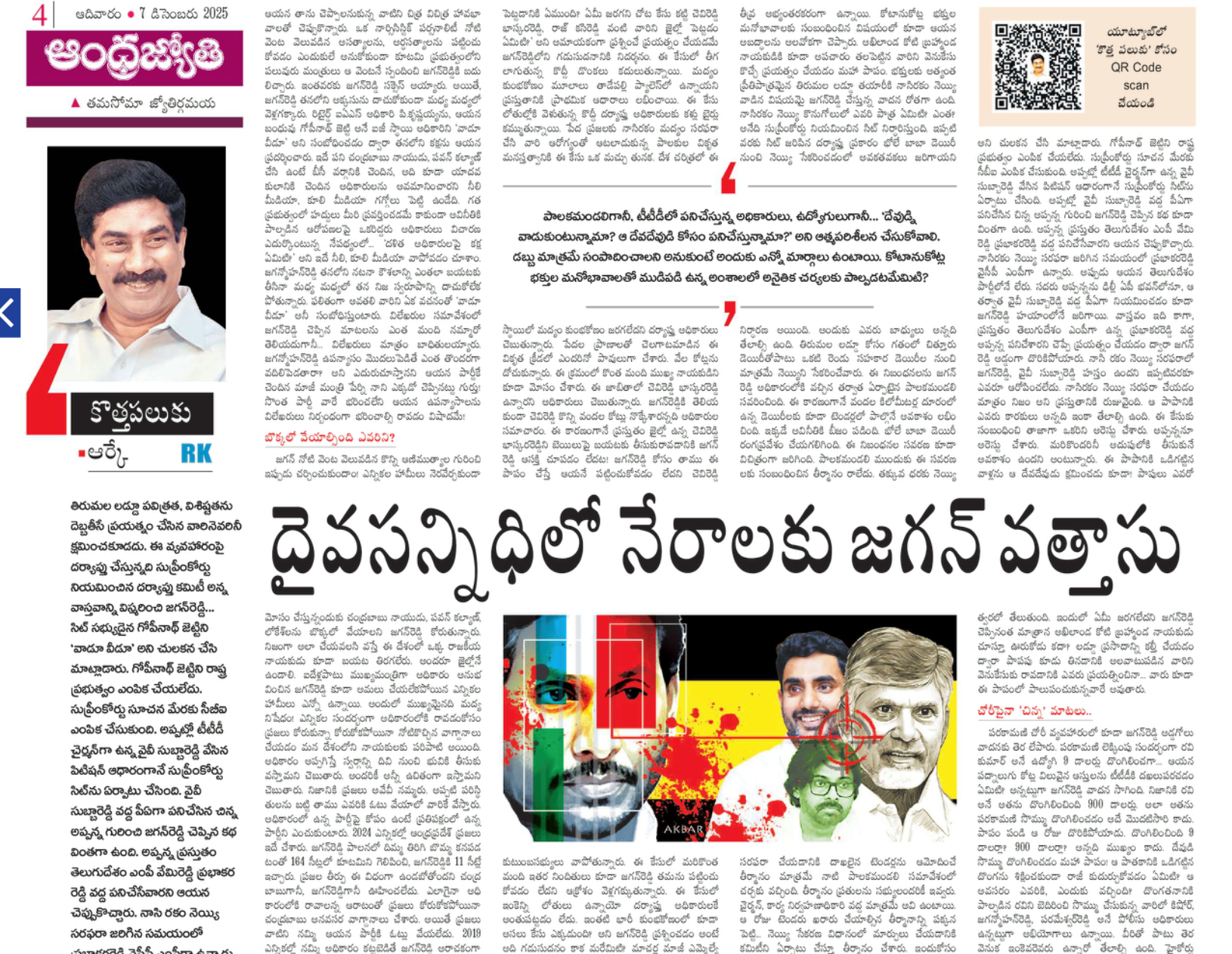 ఆర్కే ఈ వ్యాసంలో జగన్ రెడ్డి అన్న ఓ మాటను సీరియస్ గా తీసుకుని.. సీరియస్గా తీసుకోకూడదని చెప్పుకొచ్చారు. ఆ మాట ఏమిటంటే….హామీలు అమలు చేయలేదని చంద్రబాబు, పవన్,లోకేష్లను బొక్కలో వేయాలని జగన్ అన్నారట. దాన్ని ఆర్కే ఖండించిన విధానం చాలా తేడాగా ఉంది. కూటమి ప్రభుత్వం ఏడాదిన్నర కాలంలోనే ప్రధాన హామీలు అమలు చేసింది. జగన్ రెడ్డి హయాలో కన్నా మెరుగైన పథకాలు అందిస్తోంది. అన్నింటికి మించి లా అండ్ ఆర్డర్, అభివృద్ధి కార్యక్రమాలు జరుగుతున్నాయి. జగన్ హయాంలో జరిగే చర్చలు అంతా అవినీతి, అక్రమాలు, దోపిడీ అయితే .. ఇప్పుడు అంతా పెట్టుబడులు,ఉద్యోగాల గురించే చర్చ. దాన్ని ఆర్కే చెప్పకుండా.. దేశంలో అందరూ నేతల్ని అలా అయితే జైల్లో పెట్టాలని..జగన్ రెడ్డిని కూడా పెట్టాలని మద్యనిషేధం హామీ గురించి చెప్పుకొచ్చారు.