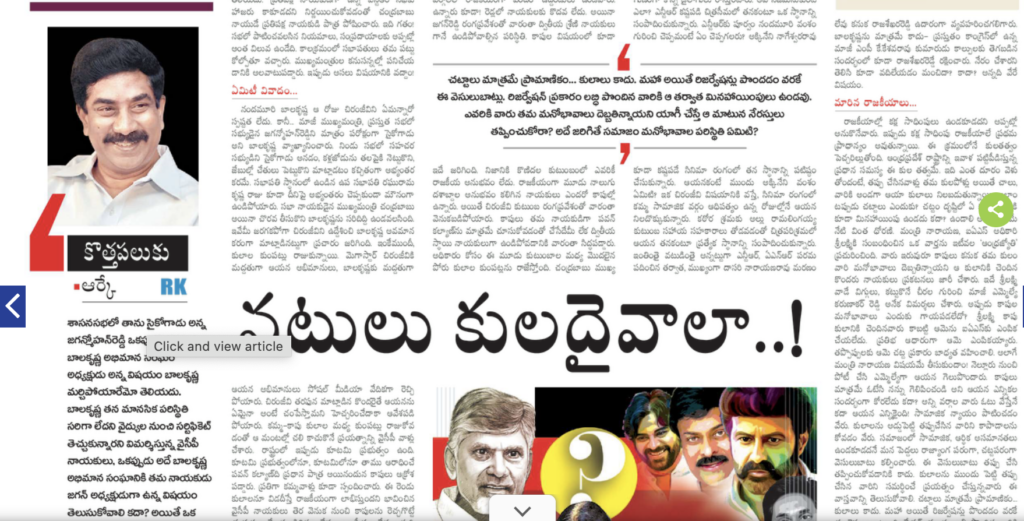 ఆర్కే పలుకు: బాలకృష్ణకు క్లాస్ !