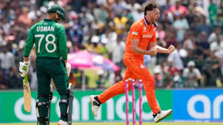 పాక్ ఘోర పరాభవం నుంచి తప్పించుకొంది. టీ20 వరల్డ్ కప్ ప్రారంభ మ్యాచ్లోనే పసి కూన నెదర్లాండ్స్ పై తృటిలో పరాజయం తప్పించుకొంది. టాస్ గెలిచి బౌలింగ్ ఎంచుకొన్న పాక్ నెదర్లాండ్స్ ని 147 పరుగులకే కట్టడి చేసింది. స్కాట్ ఎడ్వడ్స్ (37) పరుగులతో టాప్ స్కోరర్ గా నిలిచాడు. సల్మాన్ మీర్జాకు 3 వికెట్లు దక్కాయి. ఓ మాదిరి విజయలక్ష్యంతో బరిలోకి దిగిన పాక్ ధీటుగానే బ్యాటింగ్ చేసింది. ఓ దశలో 11 ఓవర్లలో 2 వికెట్లు కోల్పోయి 98 పరుగులతో పటిష్ట స్థితిలో నిలిచింది. ఈదశలో పాక్ క్రమంగా వికెట్లు కోల్పోయి మ్యాచ్ ని జార విడుచుకొనే పరిస్థితిల్లోకి వచ్చింది. 114 పరుగులకు 7 వికెట్లు చేజార్చుకొని, ఓటమి దిశగా పయనించింది. ఈ దశలో నెదర్లాండ్స్ సంచలనం సృష్టిస్తుందనే అనిపించింది.